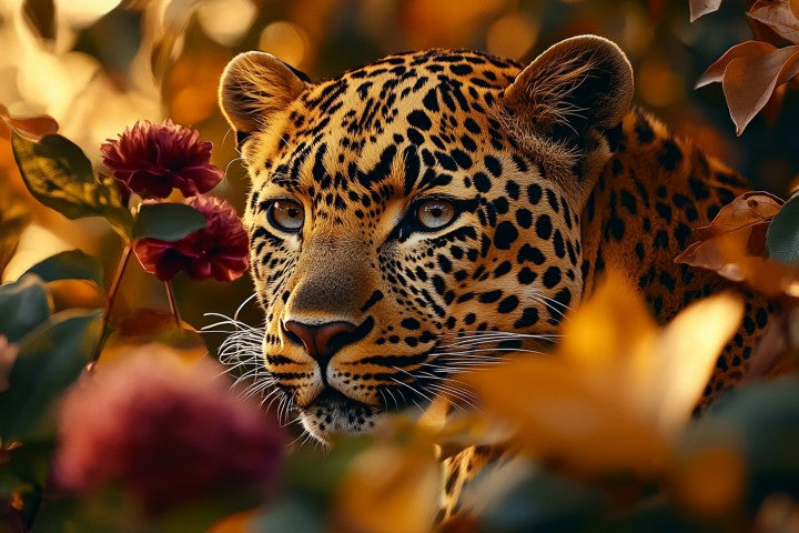 Schilderij 110x160 Panter tussen de bloemen (Glas)