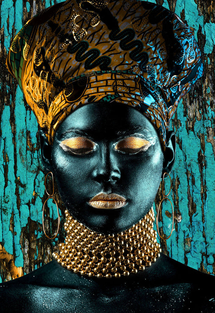 Schilderij 110x160 Vrouw met gouden hoofddoek (Glas)