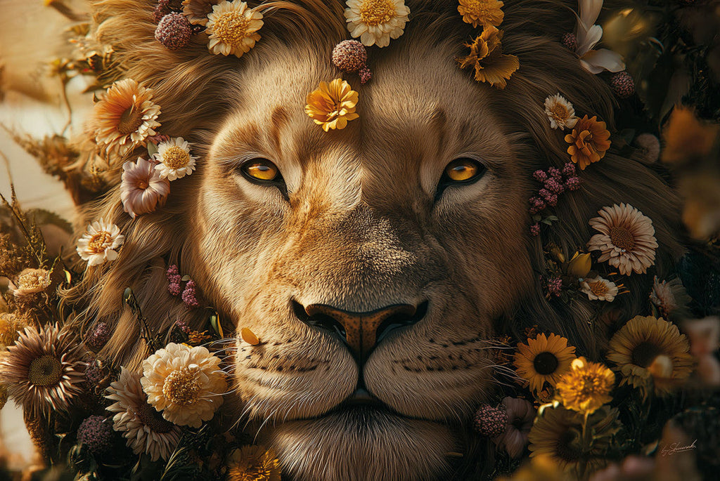 Schilderij 120x80 Artistieke mannetjes leeuw (Glas)