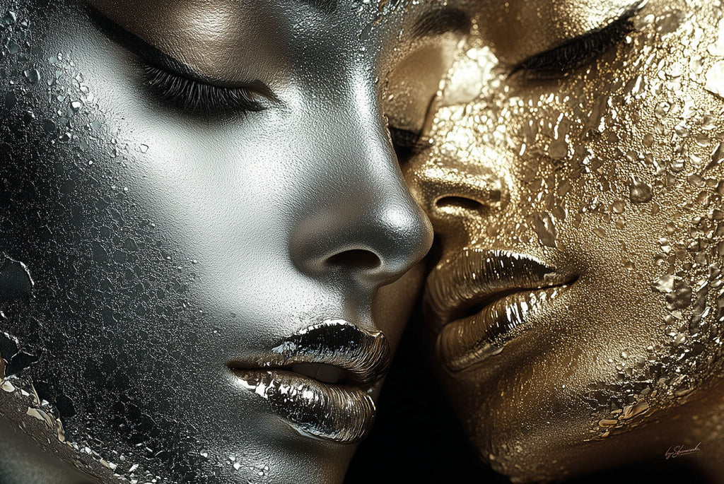 Schilderij 120x80 Gouden/zilveren vrouwen (Glas)