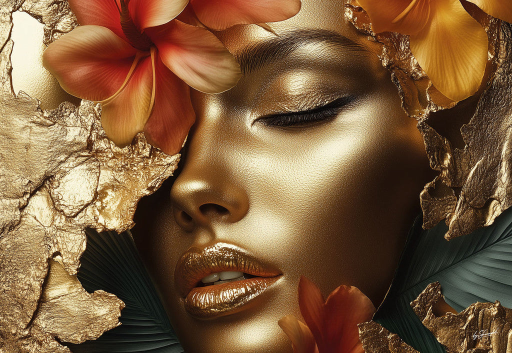 Schilderij 160x110 Gouden vrouw in setting (Glas)
