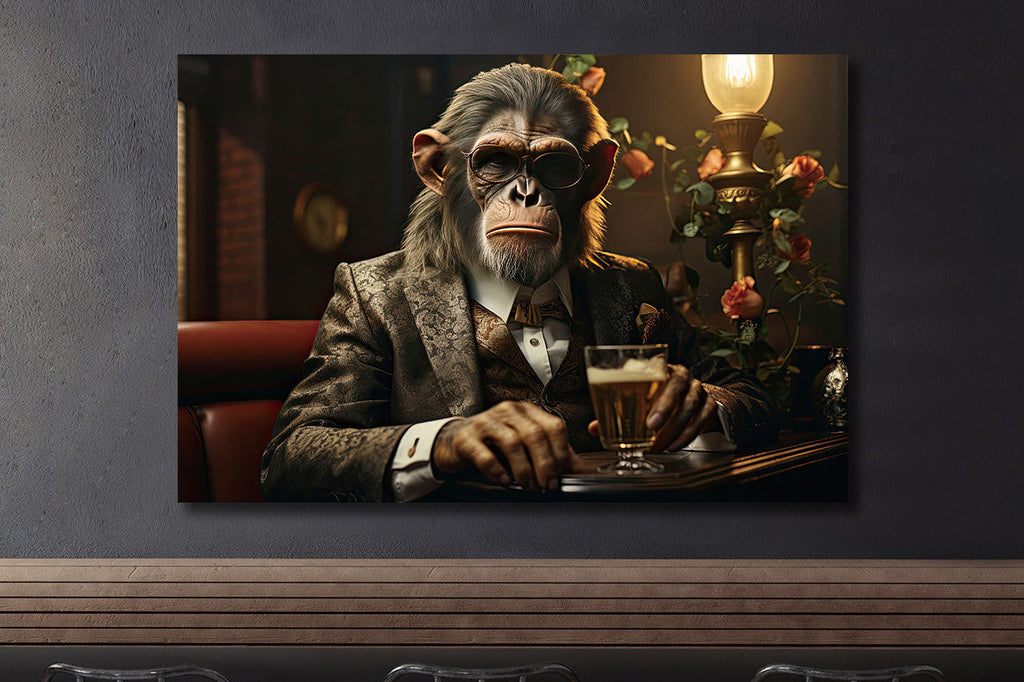 Schilderij 80x120 Aap aan de bar (Glas)