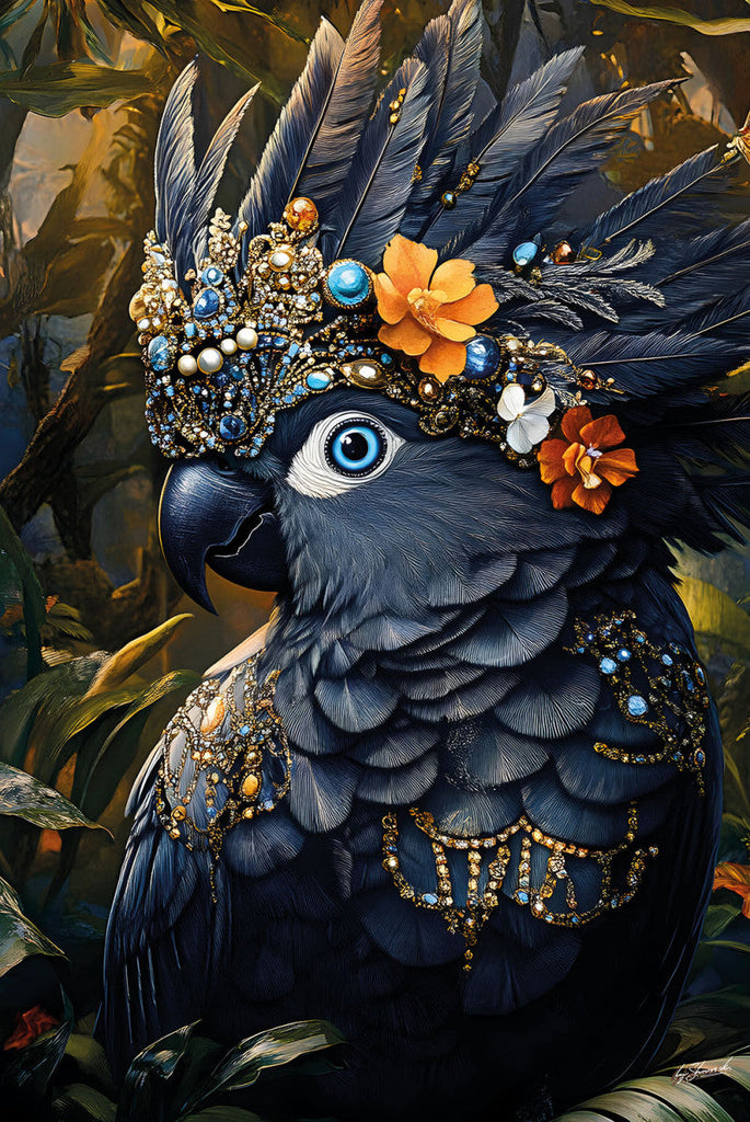 Schilderij 80x120 Papegaai met sierraden (Glas)