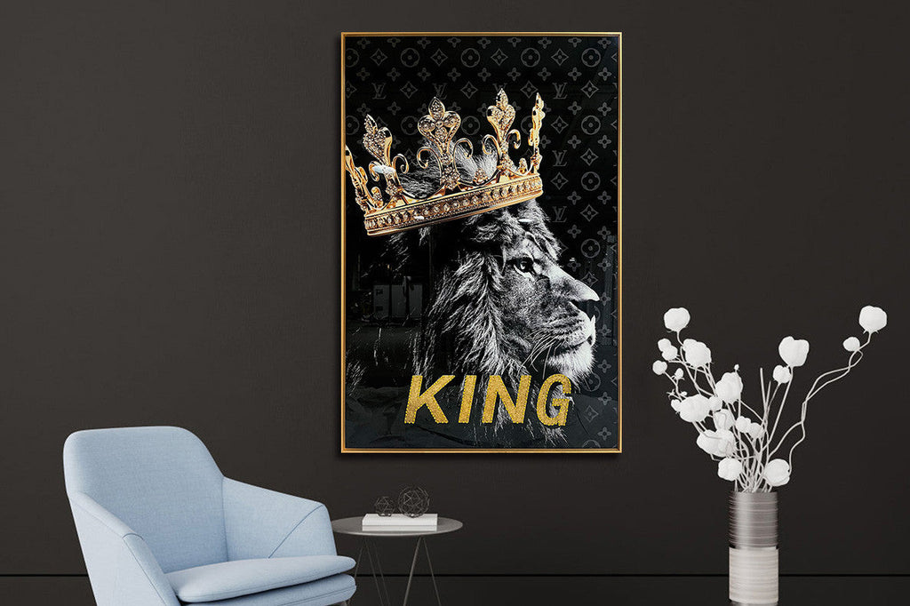 Schilderij met kristallen en lijst 80x120 Leeuw met kroon (Glas)
