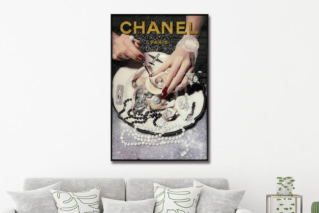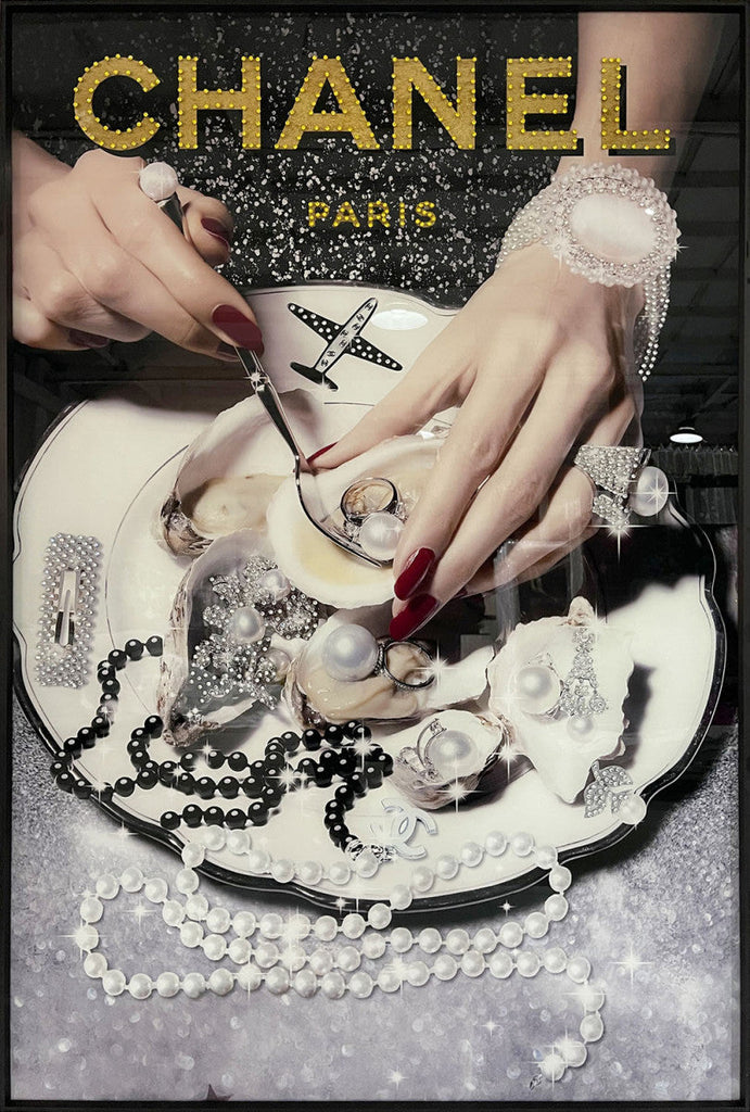 Schilderij met kristallen en lijst 80x120 Parels (Glas)